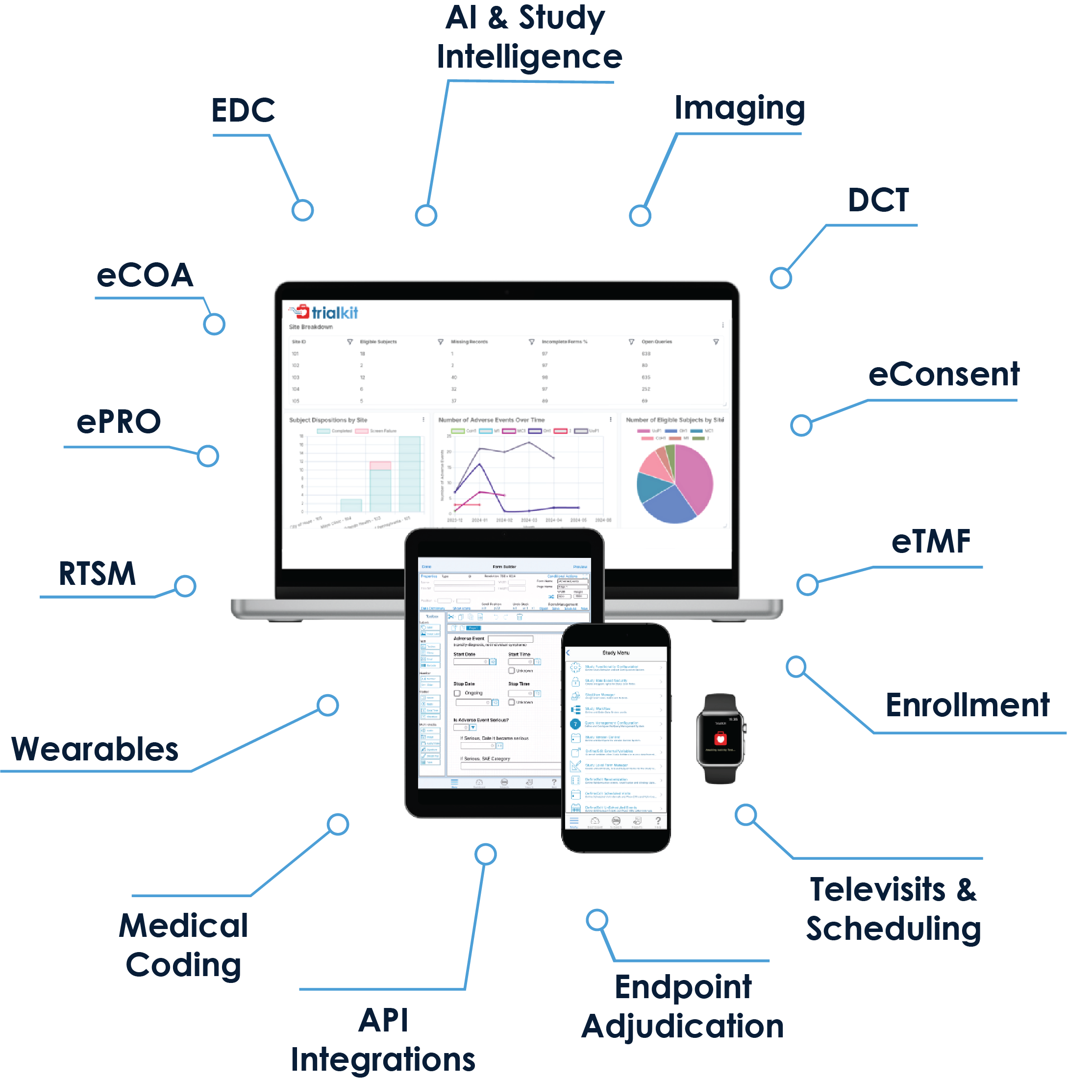 TrialKit is a unified eClinical platform for clinical trials and non-interventional research. It's an end-to-end solution for service providers, sponsors, and CROs to build and run regulatory compliant studies with all of the tools they need in one place.